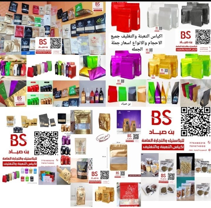 اكياس التعبئه التغليف والطباعه بجميع الاحجام والالوان مناسبه لكل انواع البهارات والمكسرات، القهوه ،البن، تغليف منتجات للتصدير ،التسويق..الخ (مصنع ادوات بلاستيكيه)
