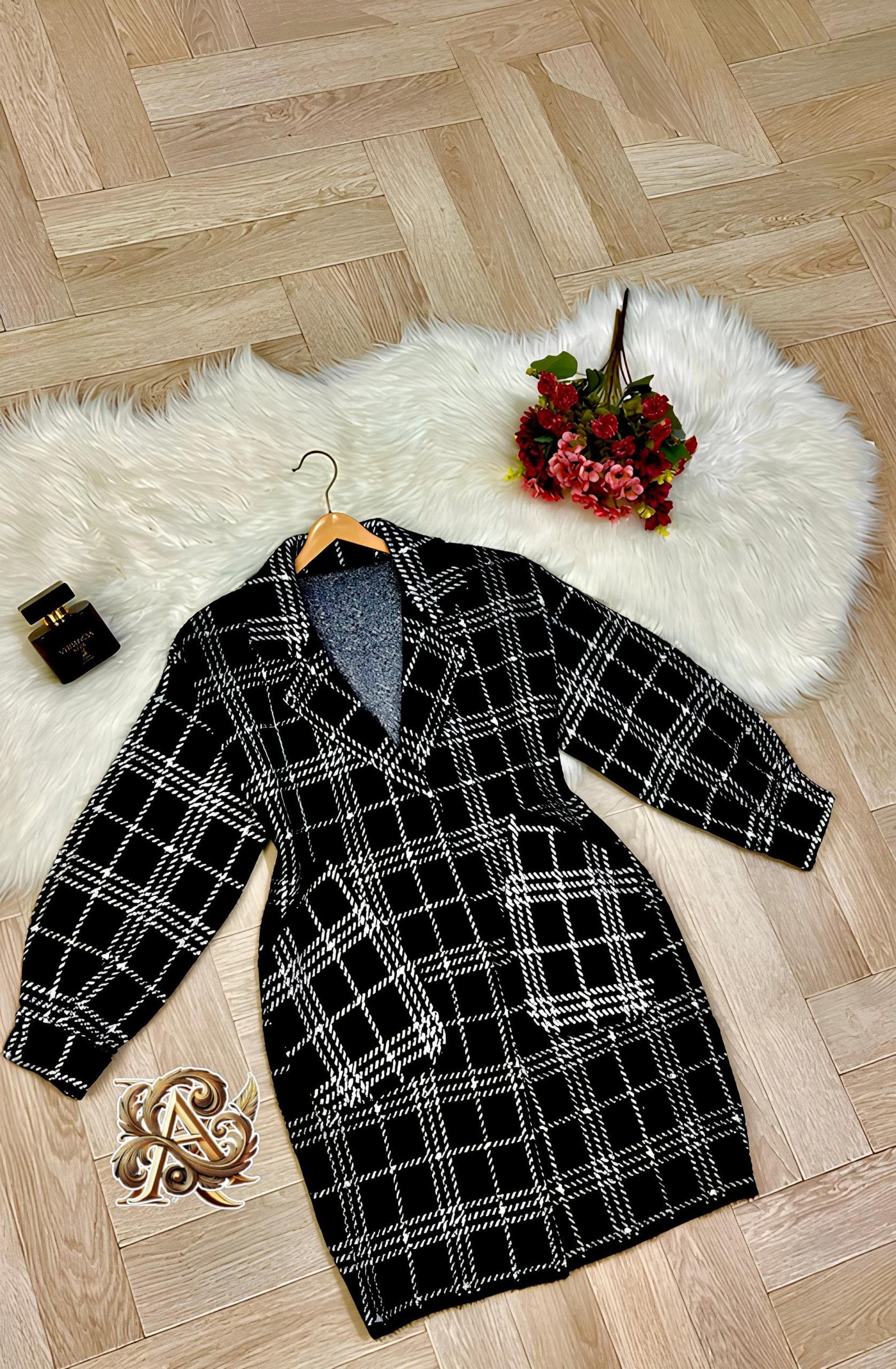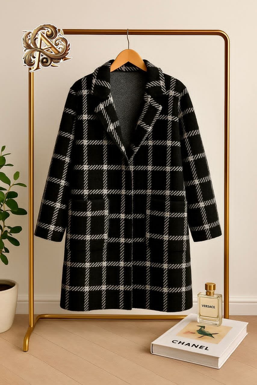 (houndstooth) *مع جيوب أمامية* *وأزرار بارزة مبطنه .*